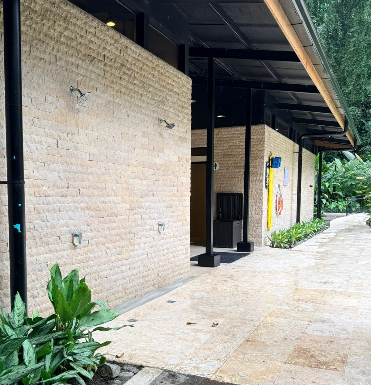 Outdoor showers with hot water!